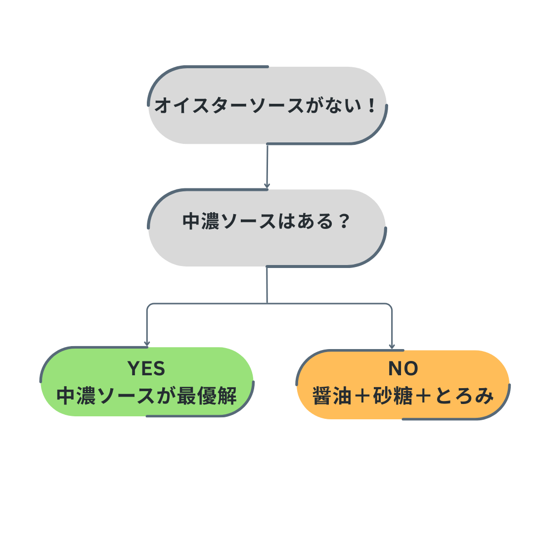 - 中濃ソースがない → 醤油+砂糖+とろみ